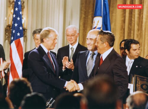 - 1977: El líder panameño de facto Omar Torrijos y el presidente estadounidense Jimmy Carter firmaron los Acuerdos Torrijos-Carter.